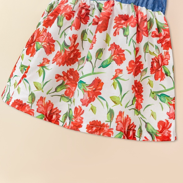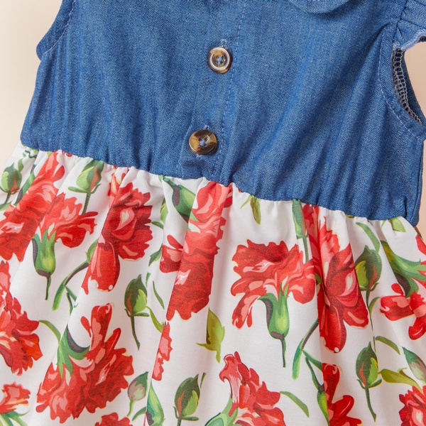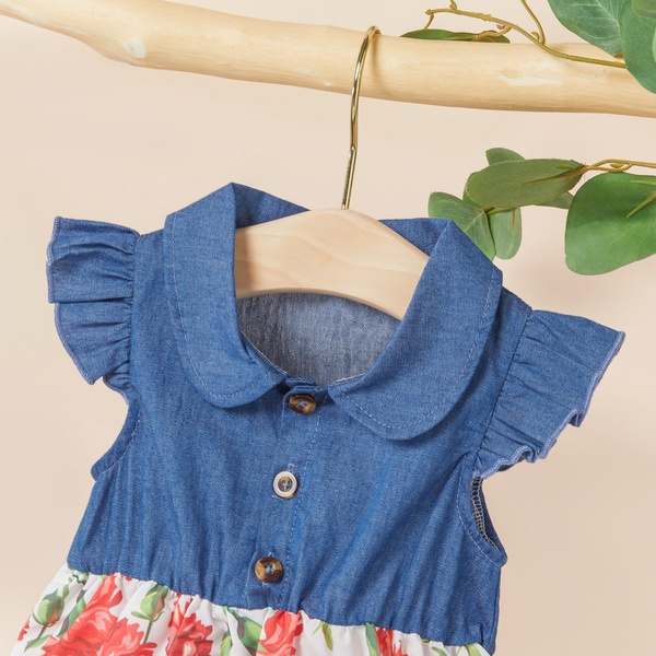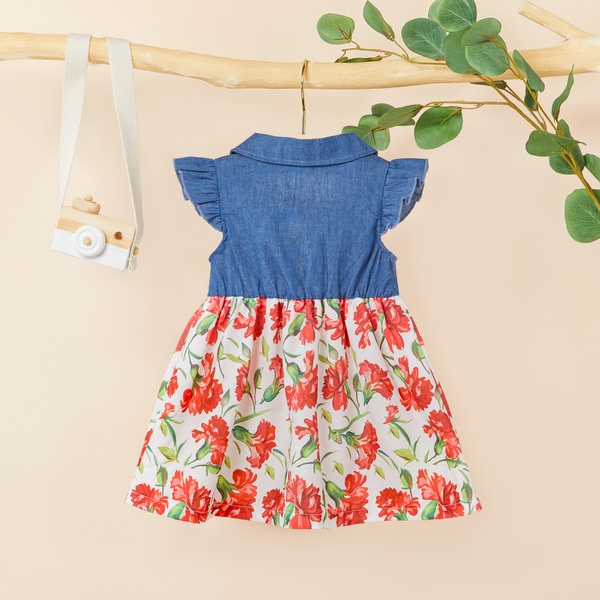 Baby / Toddler Pretty Flutter-sleeve Denim Splice Floral Dress