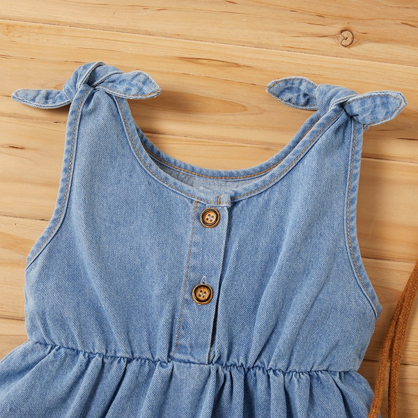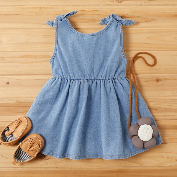 Baby Girl Casual Solid Sleeveless Denim Dress